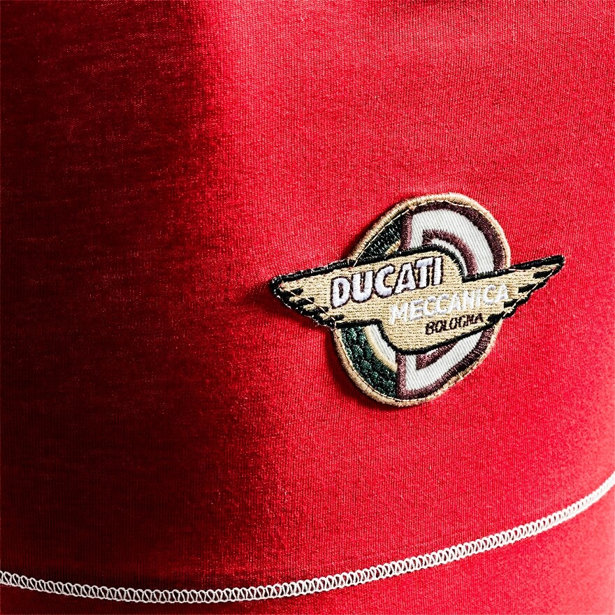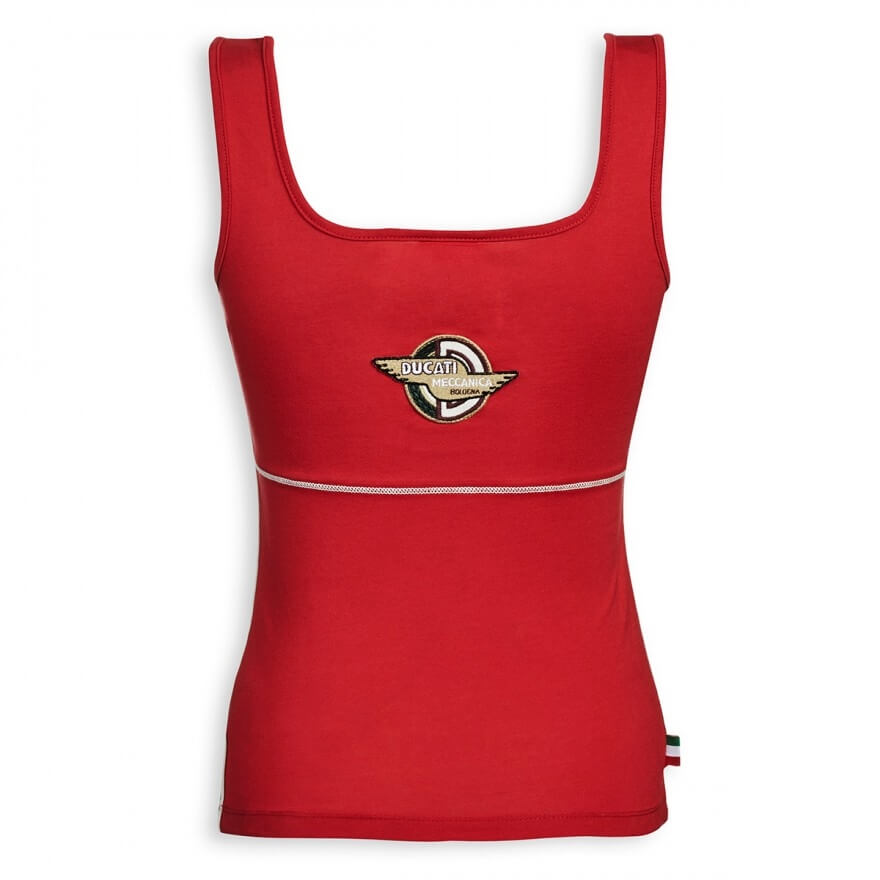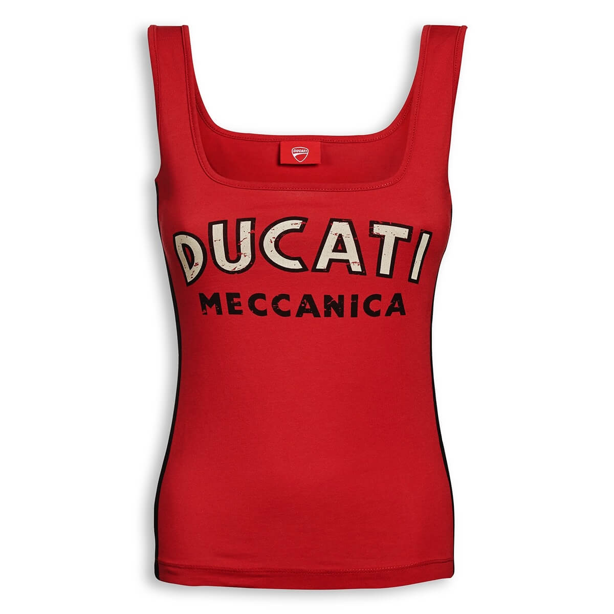 Also in summer, the Ducati goes with fashion style! With the sleeveless shirt Meccanica, every woman can express her passion for Ducati with a comfortable and versatile piece of clothing. The shirt is available in black and vintage red. It carries on the front the traditional lettering in plastisol print, which makes it even clearer and more radiant, while on the back in the neck area is the famous logo with the typical "wings" of the fifties.